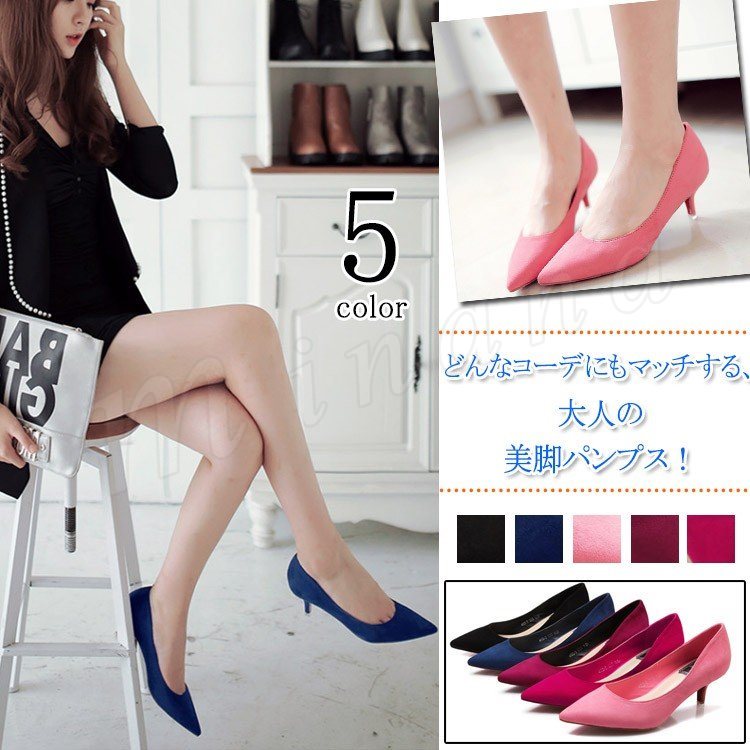 パンプス スエードパンプス レディース 太めヒール ポインディトゥ チャンキーヒールパンプス 走れるパンプス 痛くない 靴