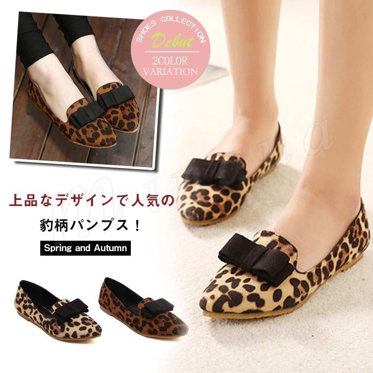 ヒョウ柄フラットシューズ レオパード スリッポン レディース フラット フラットシューズ パンプス ヒョウ柄 豹柄 ひょう柄 ローヒール 靴 シューズ