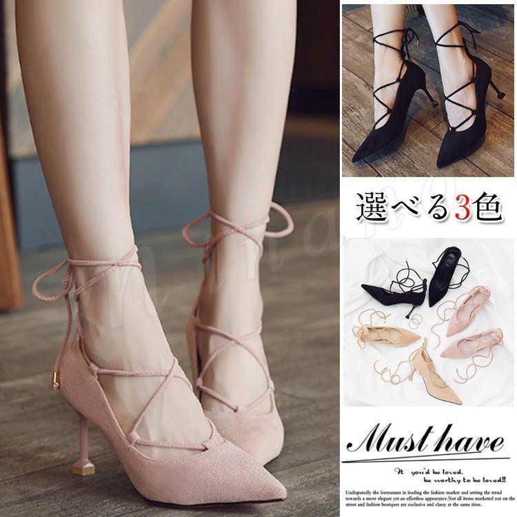 スウェードレースアップパンプス シューズ レースアップ 編み上げ 編み上げシューズ 編み上げパンプス レディース ポインテッドトゥ ピンヒール