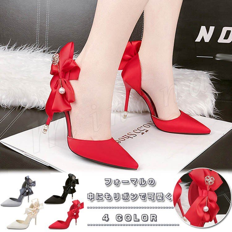パンプス ピンヒール レディース シューズ ハイヒール ファッション リボン付き ポインテッドトゥ 婦人靴 靴 春新作