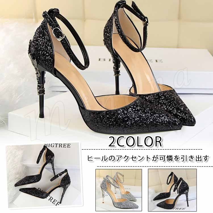 結婚式 パンプス パーティー シューズ パーティーシューズ パーティー パンプス 結婚式 靴 ハイヒール シンプル キラキラ ストラップ ピンヒール