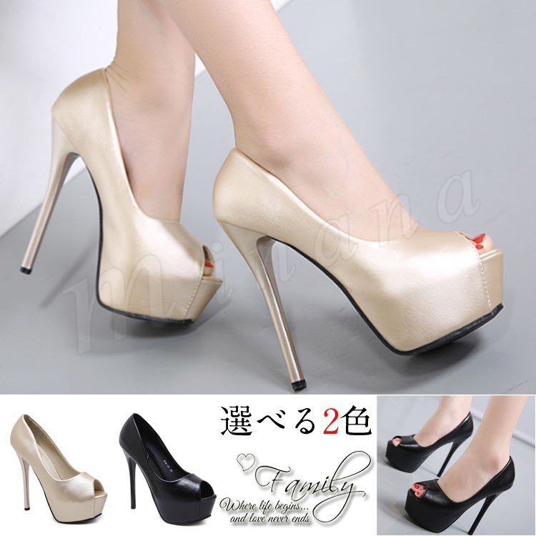 レディース 厚底 パンプス キャバ キャバパンプス 美脚 ピンヒール オープントゥ 足長 13cmヒール レース ブラック 靴 シューズ
