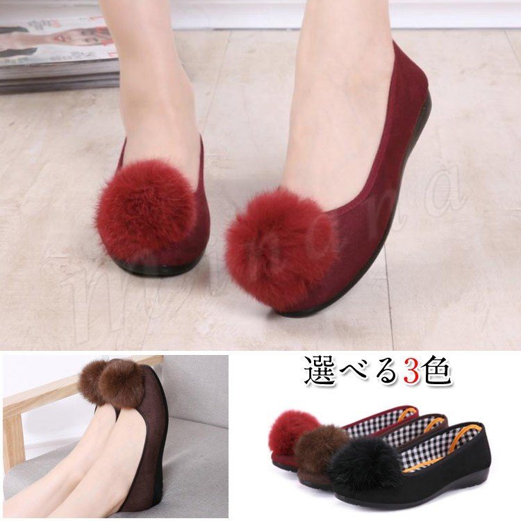 靴 フラットシューズ フラット シューズ レディース ファー ボンボン スクエアトゥ スクエア ぺたんこ