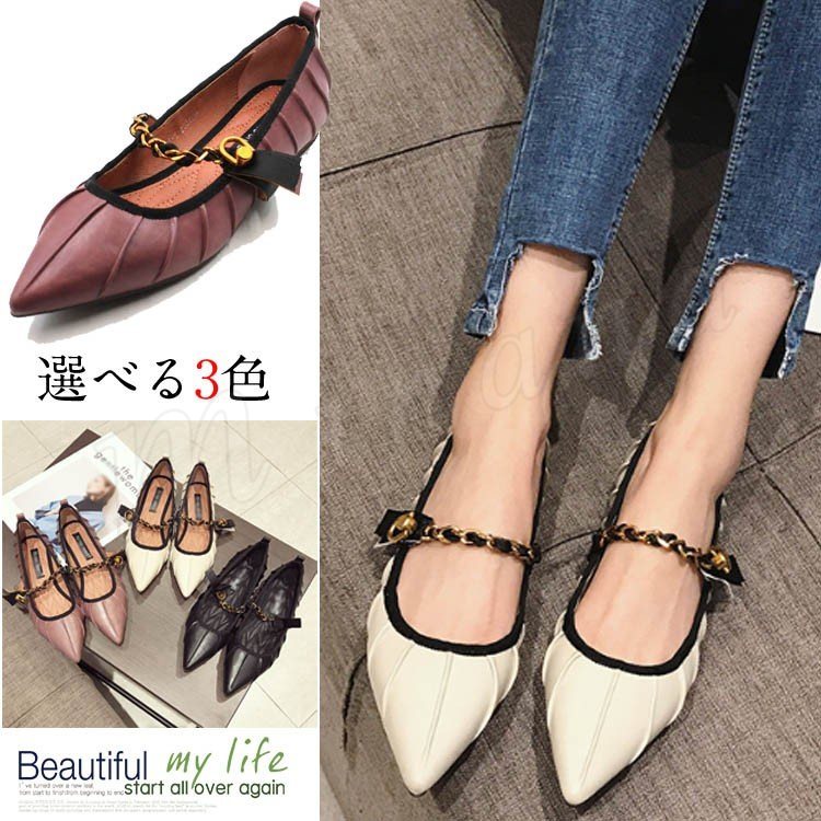 2018新作 パンプス ストラップ フラットシューズ ポインテッドトゥ 靴 痛くない ビジネス 通勤 歩きやすい カジュアル 美脚 春夏秋 おしゃ