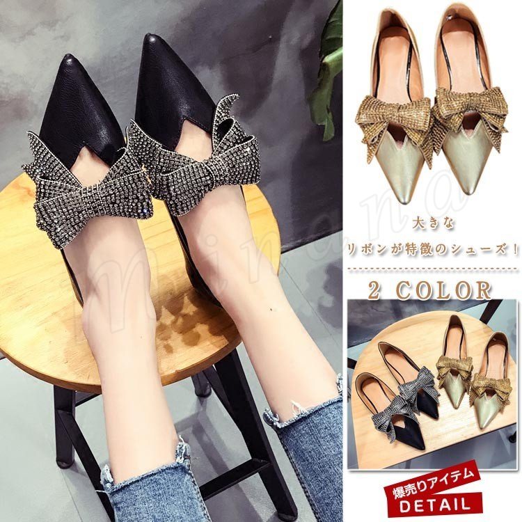 フラットシューズ レディース バレエシューズ レディース ビジュー セレブ ぺたんこ 柔らかい 軽い 黒 ブラック OL パンプス 楽チン モカシン