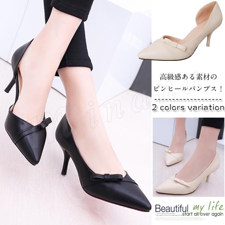 パンプス ピンヒール パンプス ヒール ポインテッドトゥ シューズ 靴 レディース 蝶結び 結婚式 ベーシック シンプル 2018秋新作 春夏