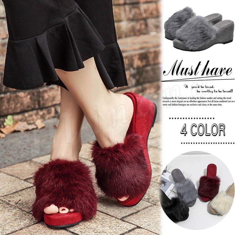 リアルファーサンダル リアルファー サンダル レディース 厚底 靴 パンプス ファーサンダル リアル ファー 歩きやすい ファー 2017秋の新作