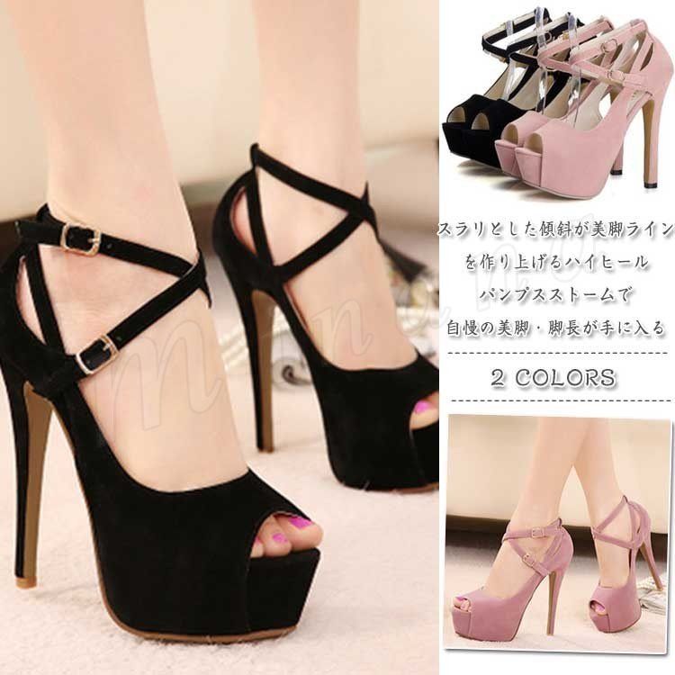 結婚式 シューズ 14センチ ヒール キャバ サンダル ストラップ付き サンダル ハイヒール 黒 ブラック 結婚式 靴 パンプス