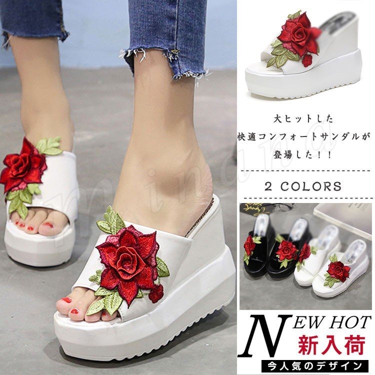 サンダル 厚底 レディース 厚底サンダル 刺繍サンダル 花柄 レディース シューズ 厚底 ウェッジヒール コンフォートサンダル夏 ストーム ヒール11
