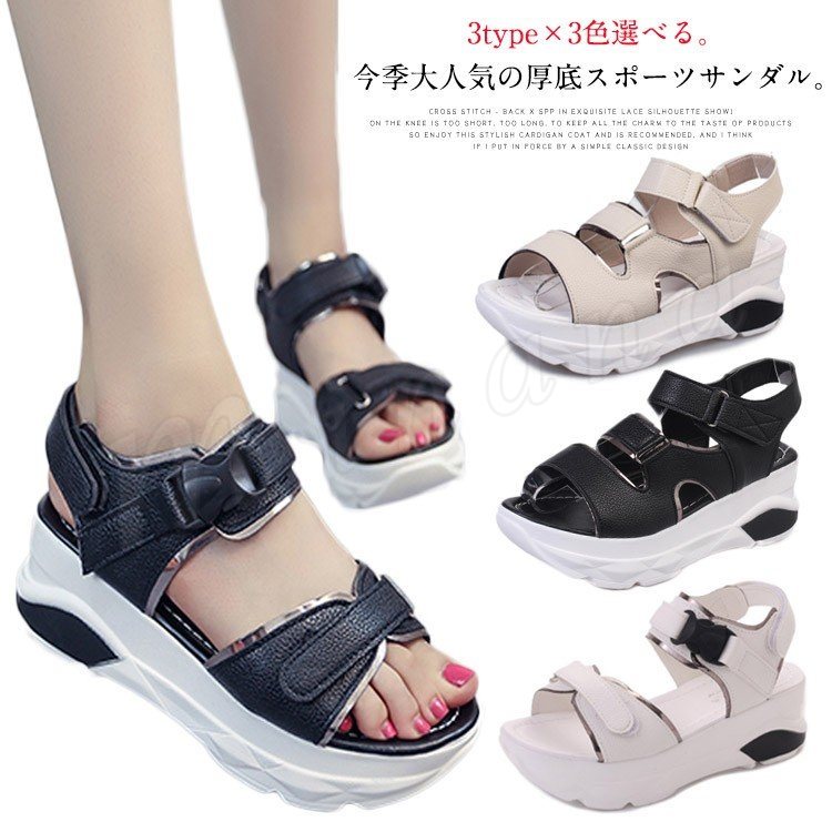 サンダル 厚底サンダル スポーツサンダル レディース 厚底 アンクルストラップ 厚底 サンダル コンフォートサンダル マジックテープ 美脚 安定感 歩