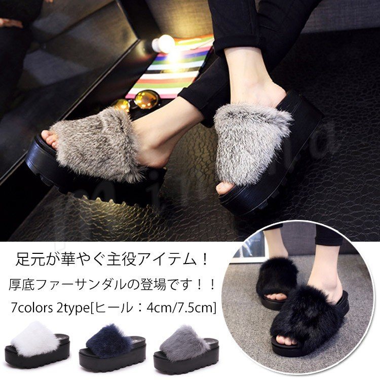 ウサギファー リアルファー サンダル レディース 厚底 ファー サンダル ファーサンダル 厚底 靴 シューズ パンプス 厚底 ヒール レディース