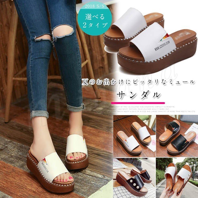 [4色展開]ミュール レディース 歩きやすい 厚底 サンダル ウェッジソール 太ヒール ウエッジソール 疲れない 歩きやすい 靴 春夏 可愛い 女子