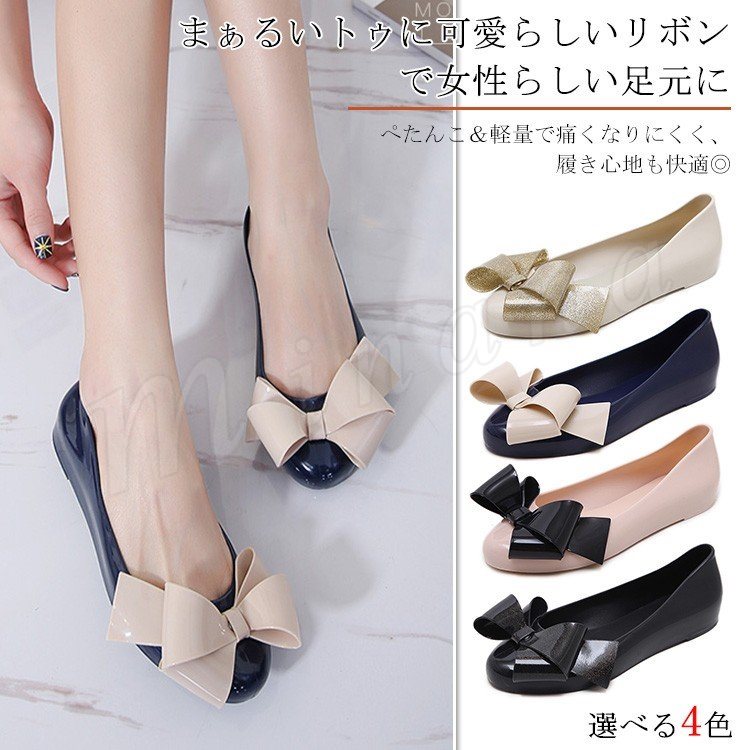 【全4色】快適な履き心地 リボンがかわいいローヒールフラットシューズ レディース 夏 フラットシューズ パンプス ラウンドトゥ ローヒール リボンシン
