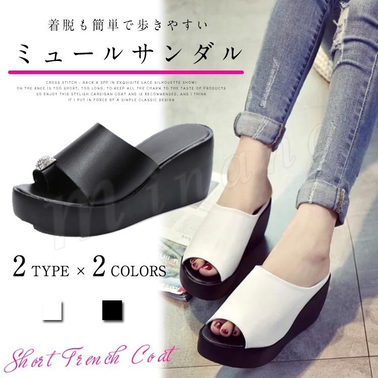 [4色展開]ミュール レディース 歩きやすい 厚底 サンダル ウェッジソール 太ヒール ウエッジソール 疲れない 歩きやすい 靴 春夏 可愛い 女子