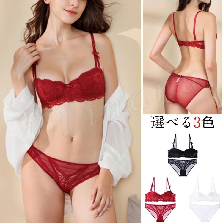 ブラジャー ショーツ セット レース 谷間ブラ 盛りブラ 3/4カップブラ セクシー下着 レディース バストアップ 美胸ランジェリー